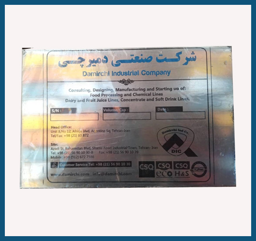 از پر کاربردترین پلاک استیل میتوانیم پلاک های نصبی روی انواع دستگاه ها ، ماشین آلات و نیم پلیت مشخصات دستگاه ساخته شده و همچنین شماره سریال ، تاریخ تولید و مدل دستگاه ها اشاره کرد.